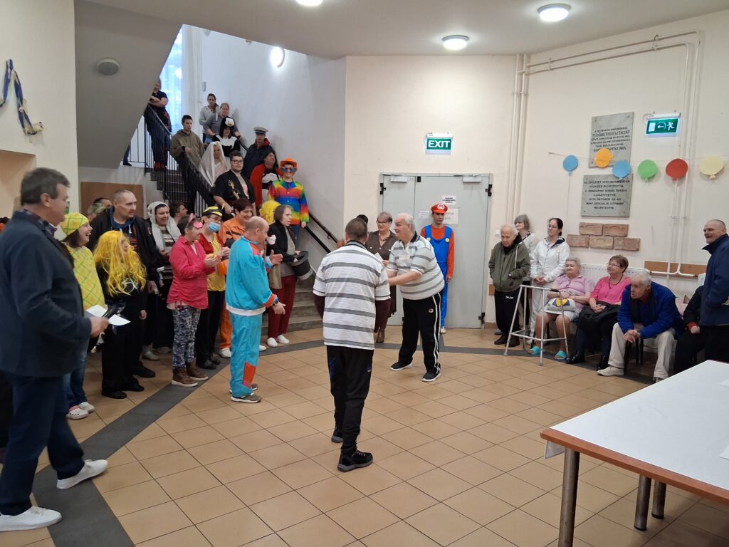 Intézményünk farsangi bálja minden évben vidám és meghitt esemény, ahol a résztvevők jelmezekbe öltözve ünnepelhetnek, táncolhatnak és együtt élvezhetik a közösség örömét. Az idei farsangon sok-sok ötletes jelmez közül kellett választania a zsűrinek. Az első három helyezett, illetve a különdíjas is tortát nyert. Ezután kihirdettük a farsangi rajzpályázat nyerteseit. A nyeremények után lakóink hot-dogot fogyaszthattak. Az esemény végét zenés-táncos mulatság zárta.